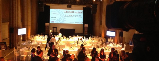 Live streaming the Global Capital event – 2014 Americas Derivatives Awards. The feed was provided to 6 LED screens as well as a huge projection screen